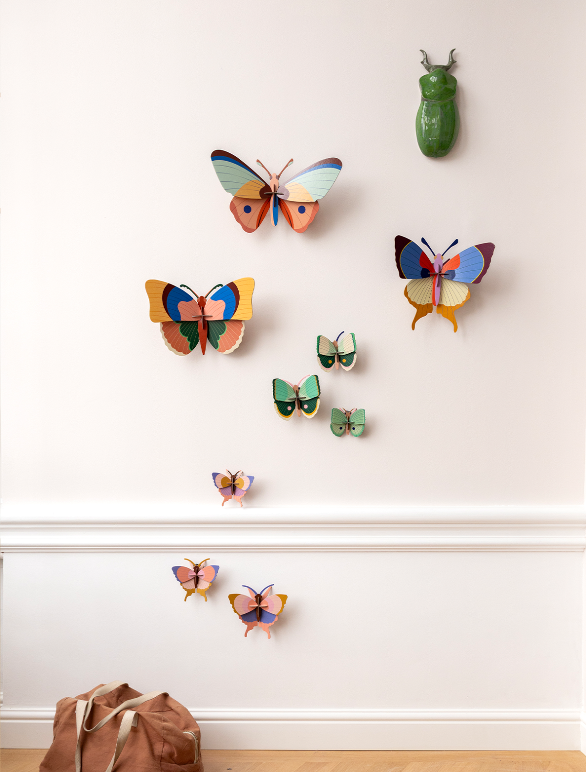 Imaginez le chuchotement de l’eau, le chant des oiseaux, puis soudain, observez ces trois créatures dansant au dessus de vous, si délicatement qu’elles vous en coupent le souffle. Et avant même que vous le réalisez, elles sont disparues! Heureusement vous pouvez suspendre ces trois papillons sur votre mur et les admirer aussi longtemps que vous le souhaitez.