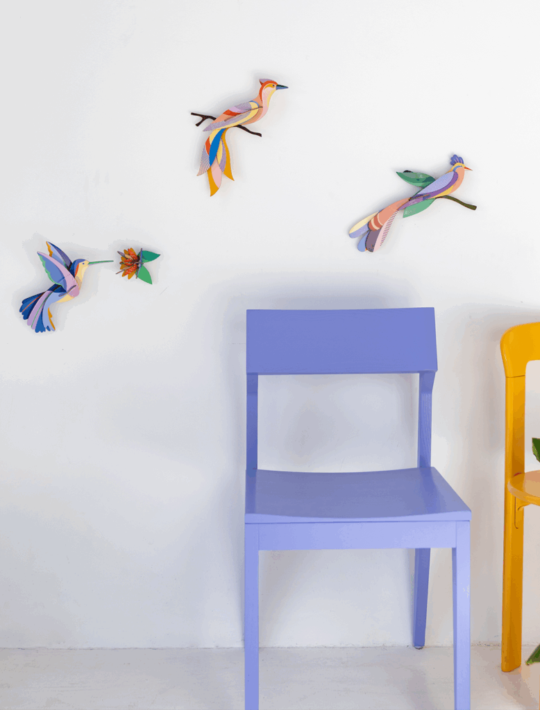 Ces oiseaux du paradis fait en carton recyclé sont des trésors pour votre maison: toujours colorés et attrayant avec leurs motifs éclatants.