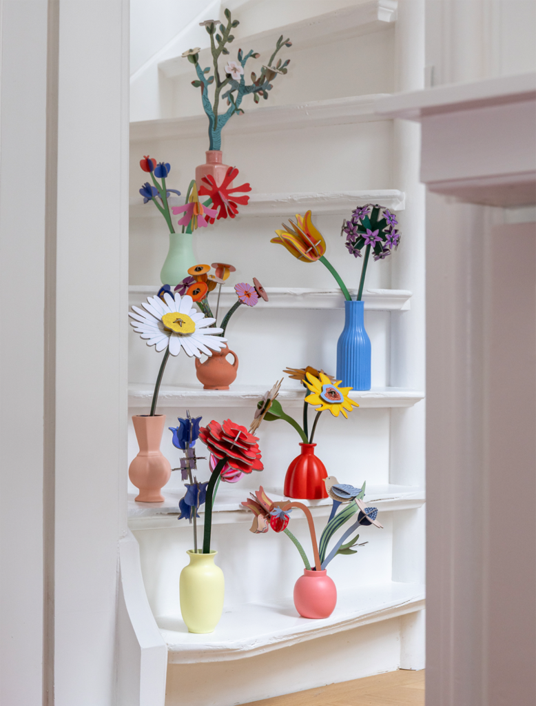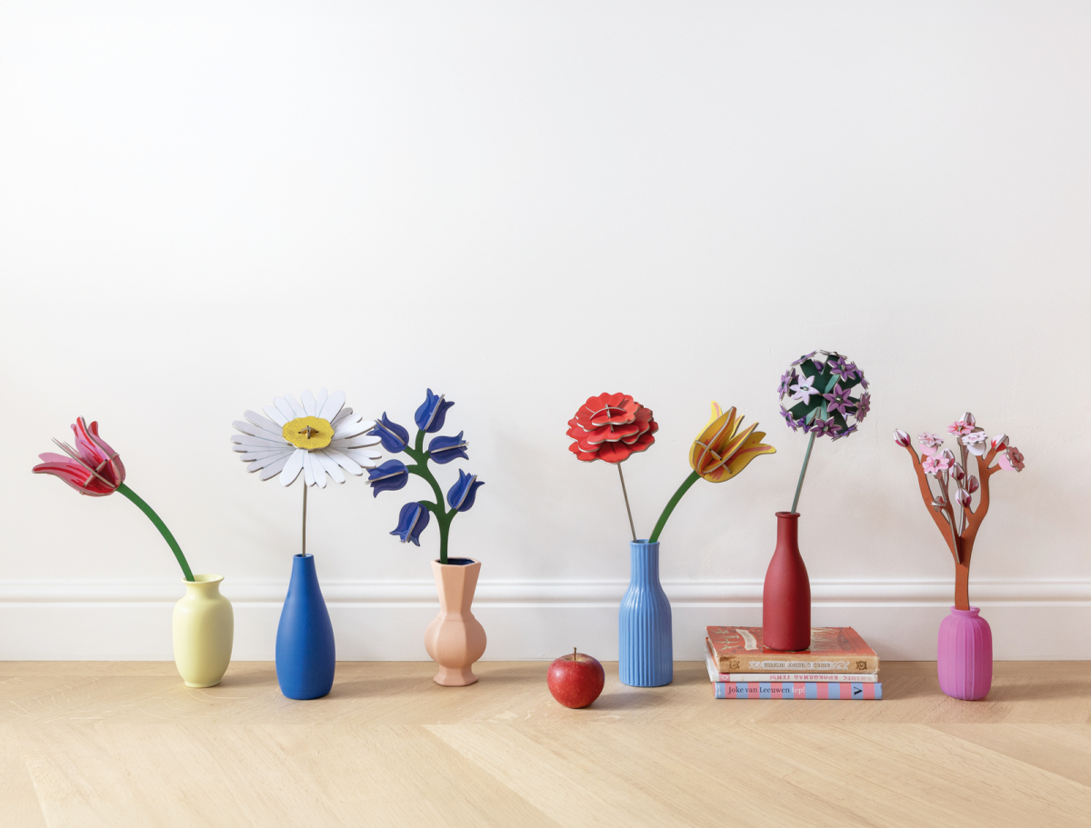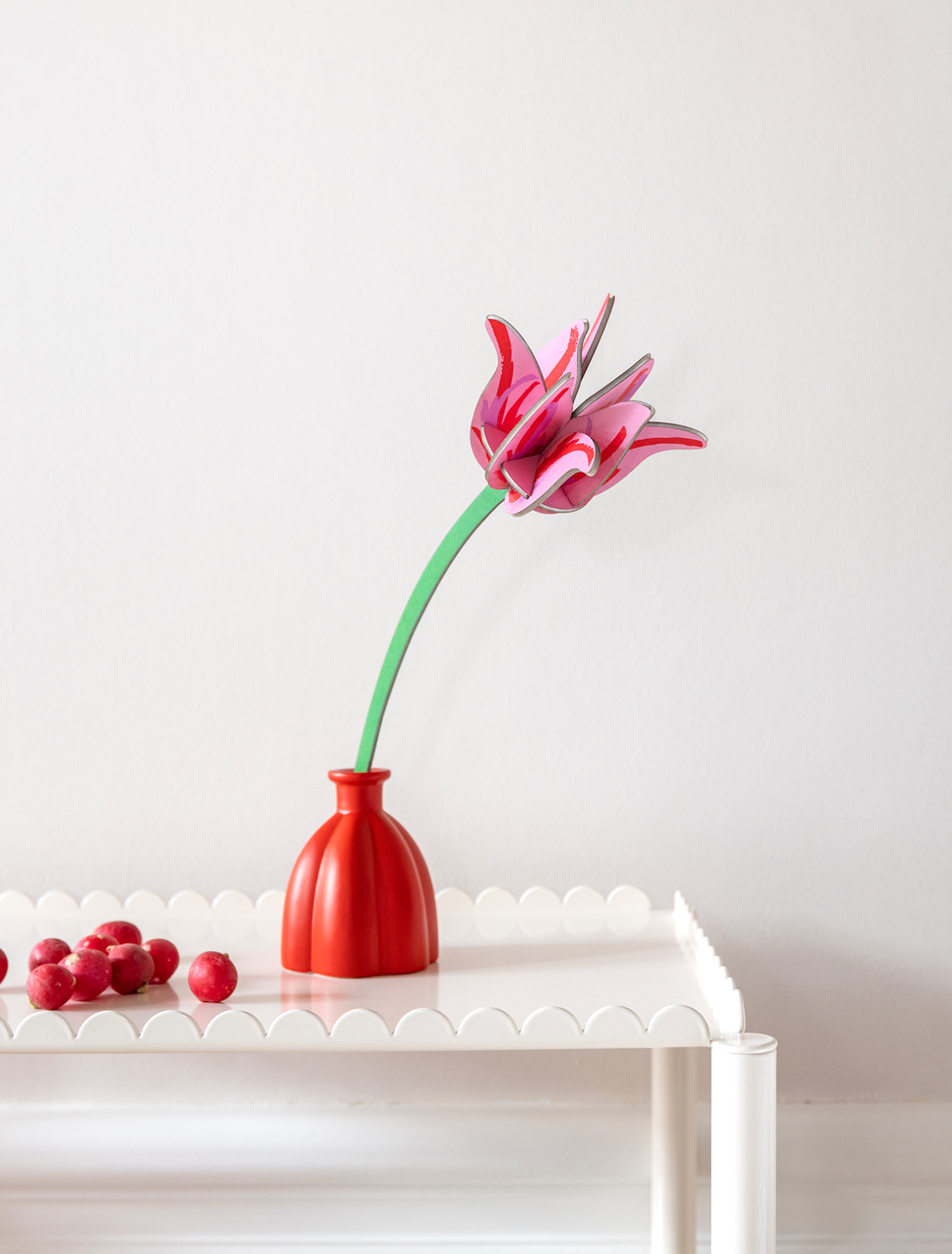 A sculptural cardboard flower designed to stand beautifully on its own, or to be combined with others from the collection into a generous, lasting bouquet. Give yourself or a loved one a flower that never wilts!