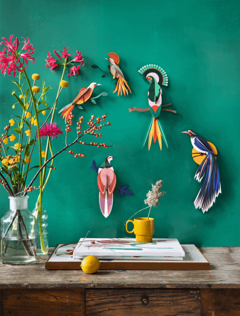 These birds of paradise out of recycled cardboard are special treasures for your home: always colourful and alluring with their striking graphic patterns. For a bird of paradise like Obi, it is the most natural thing in the world to look its very best every day.