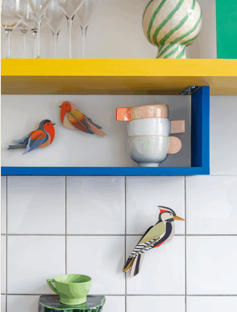 Garden birds chirp around us, pecking at some crumbs, glancing around, then fluttering away. They add color to our daily lives. These cardboard robins won’t fly away and can be given a lovely spot on your wall.